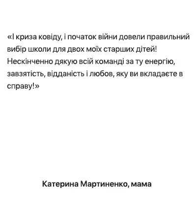 Водночас ми обмежуємо тривалість такого формату до 2 тижнів, адже головний акцент у школі робиться на очному навчанні та взаємодії.